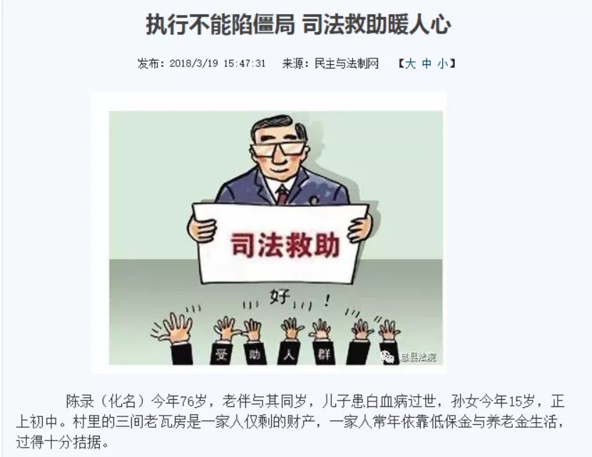 息县法院向县委县政府申请专项司法救助金,成立司法救助委员会,统一审核办理司法救助案件,共实施司法救助91人,救助金额达157.3万元。在陈某航诉陈某录健康权纠纷一案的执行中,承办人发现被执行人陈某录已76岁,儿子已去世,尚有未成年孙女需要抚养,确无偿还能力;申请人陈某航56岁,因纠纷致残并导致生活困难。承办人见此情况,迅速上报案情并按规定启动司法救助程序,依法为陈某航申请了三万元司法救助,最终促使案件得以执结,矛盾得以化解。