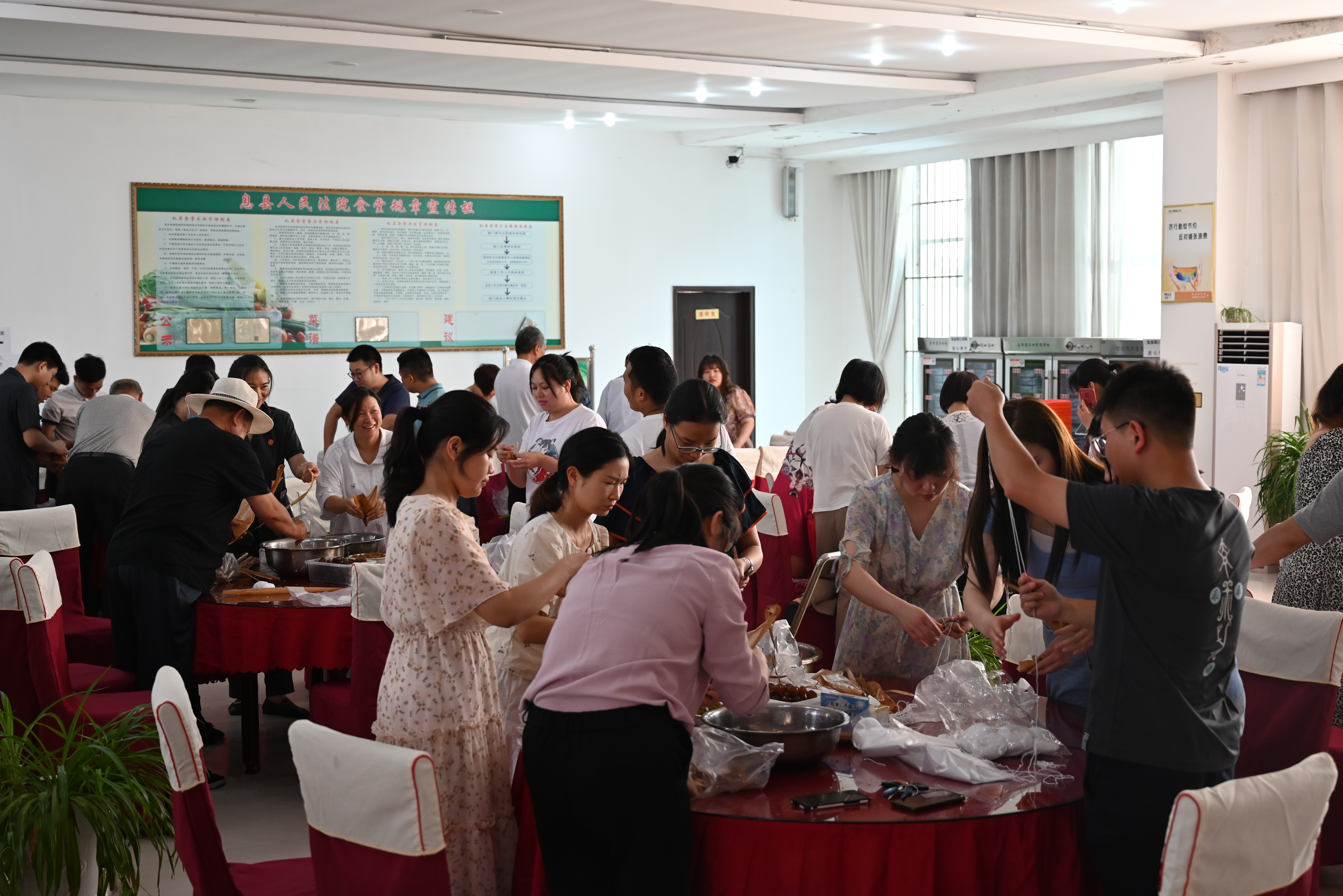 6月10日,在息县法院职工食堂内,一场包粽子大赛正如火如荼地进行着。为庆祝端午佳节,干警齐聚一堂,开展“我们的节日·端午”包粽子活动。