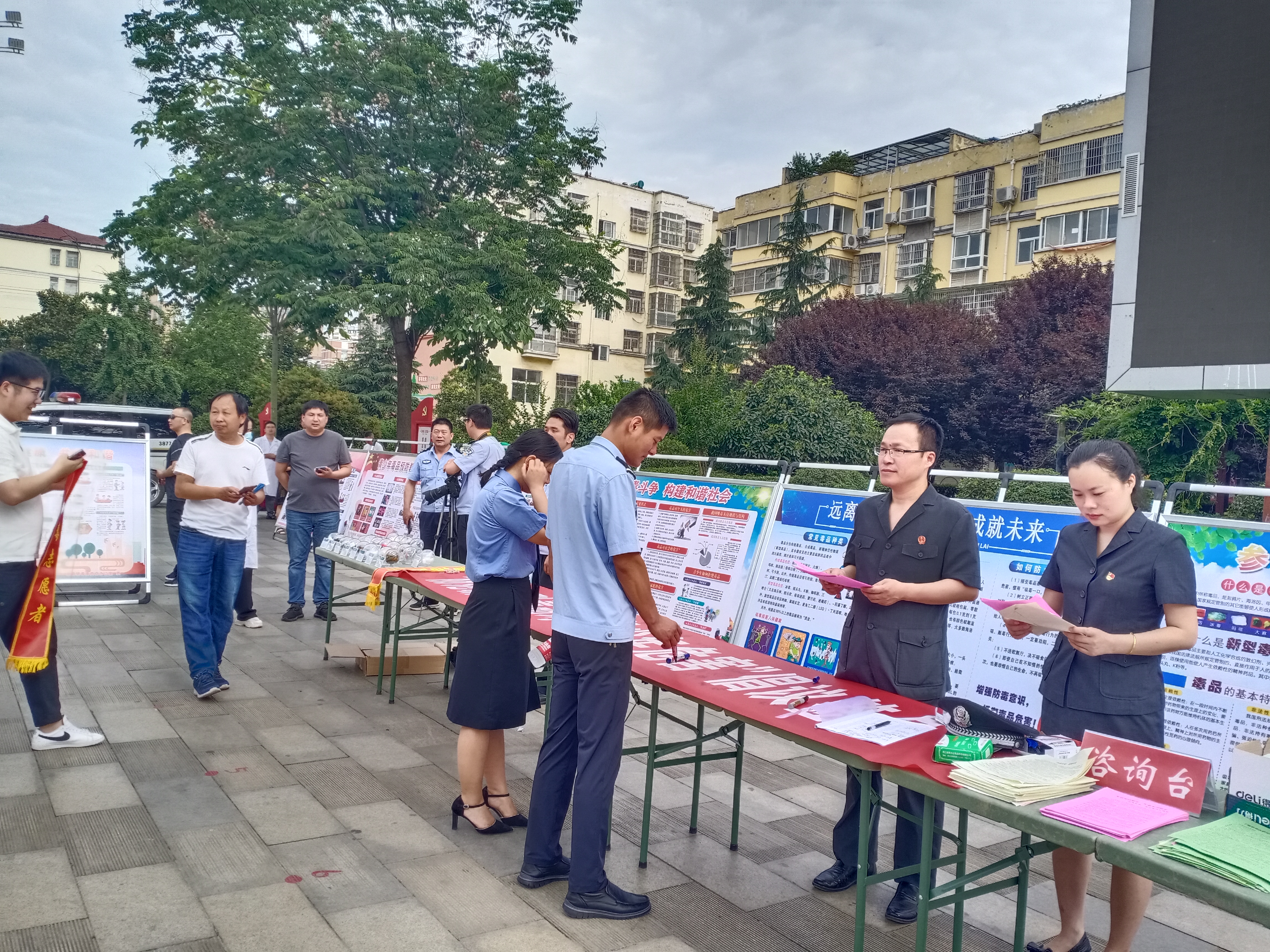 活动中,息县法院与各禁毒成员单位共设置咨询台1个,悬挂标语6条,展出法律法规及相关案例板面50块,展示各类毒品模型20种,发放禁毒宣传单500余份,接受群众咨询100余人次,受教育群众达2000余人。