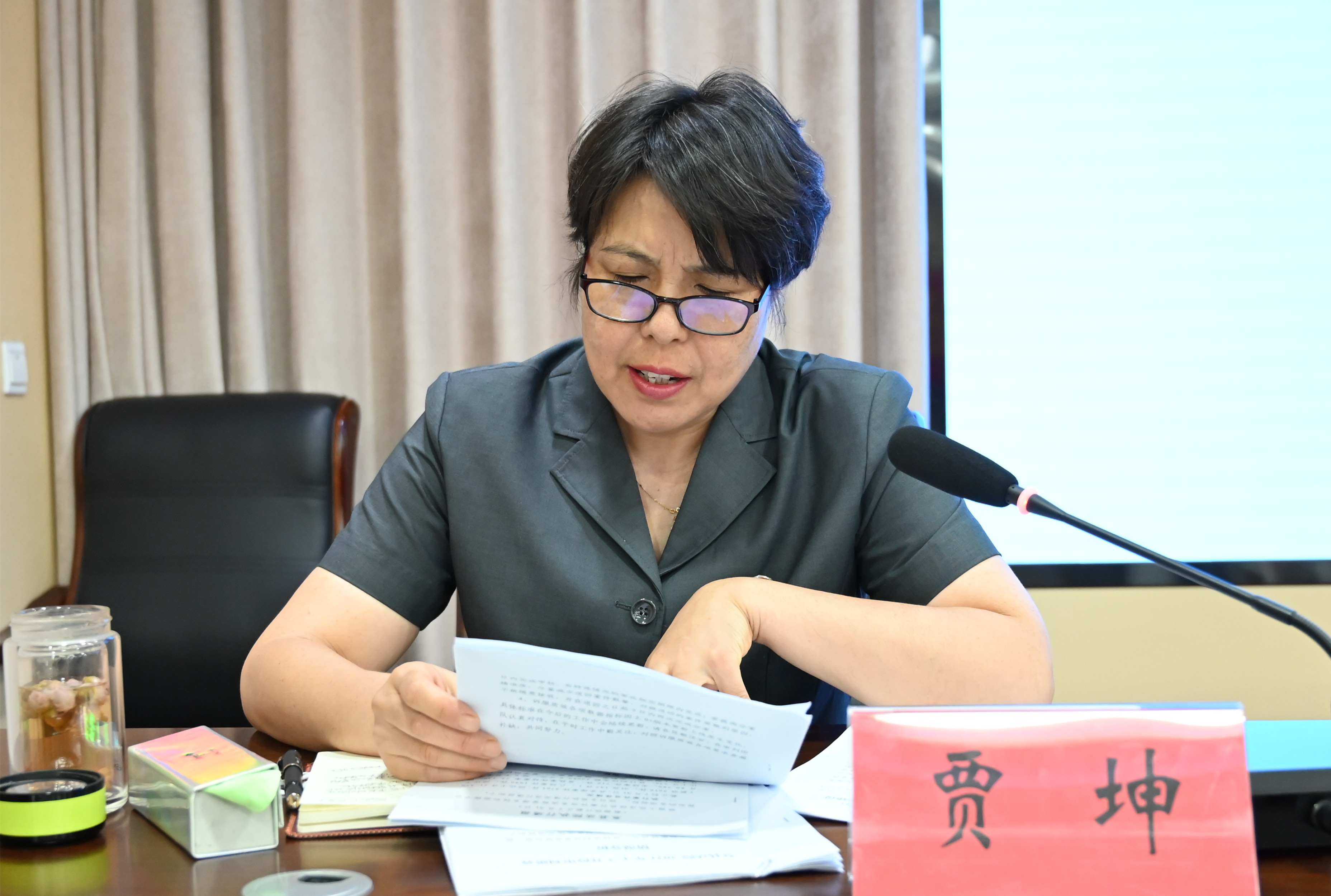 审判委员会委员、工会主席贾坤通报7月份诉讼服务质效情况。