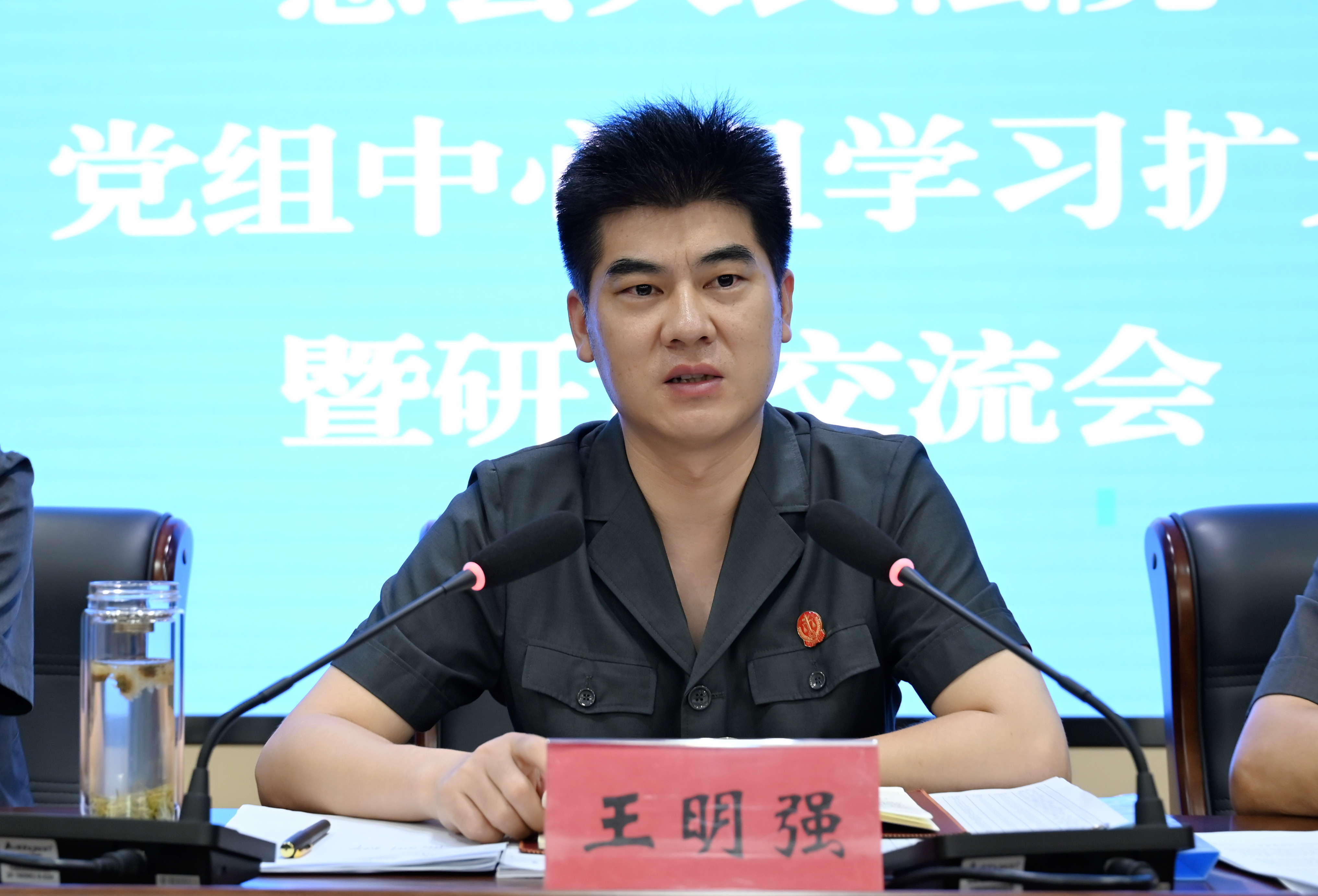 8月10日,息县人民法院召开党组中心组学习扩大暨研讨交流会。党组书记、院长王明强主持会议并讲话。在家的院领导、支部书记、部门负责人、员额法官、执行团队负责人参加会议。