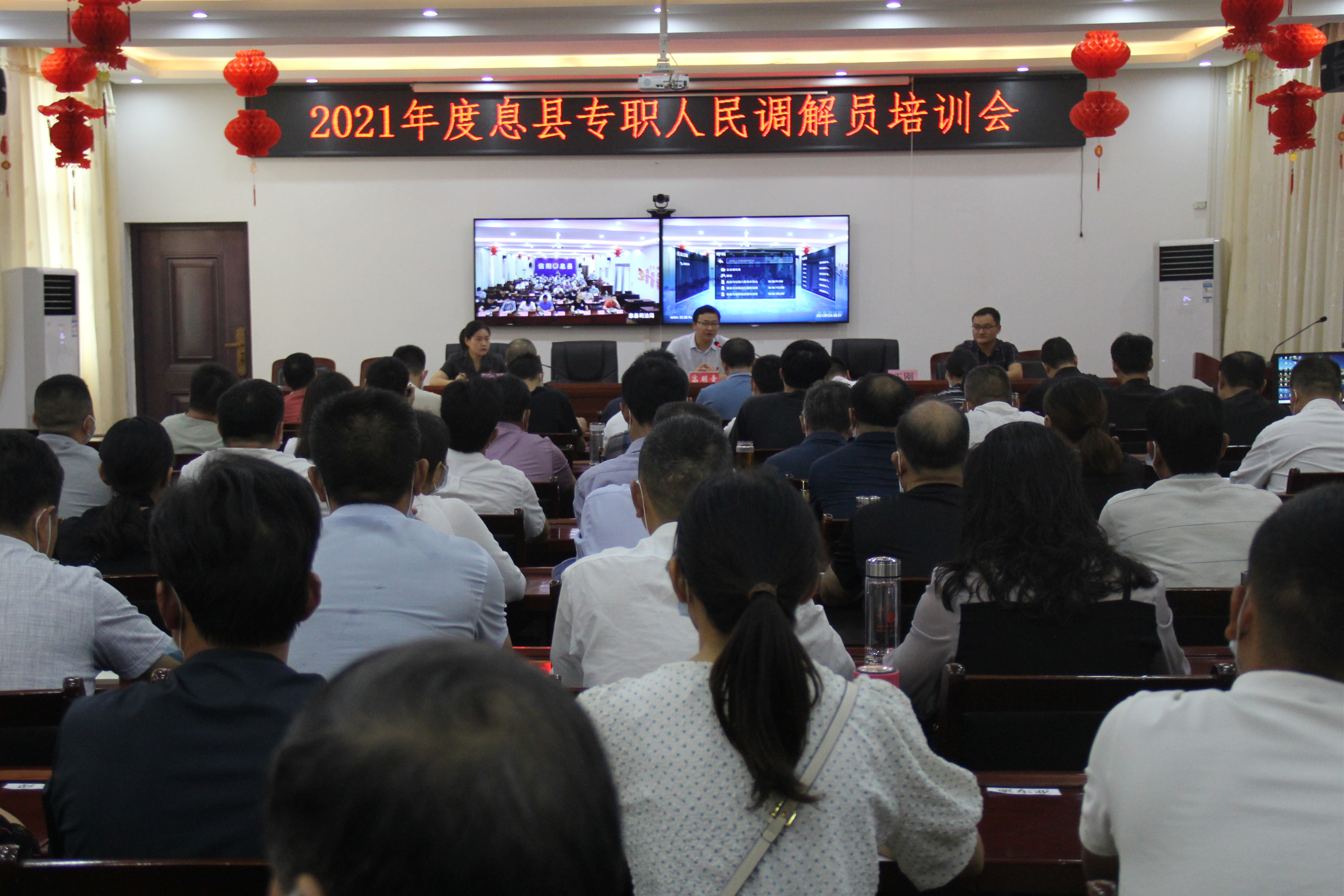 9月24日,息县人民法院与县司法局联合召开专职人民调解员培训会。培训会由县司法局党组成员、副局长高明青主持,息县人民法院立案庭员额法官刘婷婷主讲,各司法所所长及专职人民调解员共70余人参加了培训会。