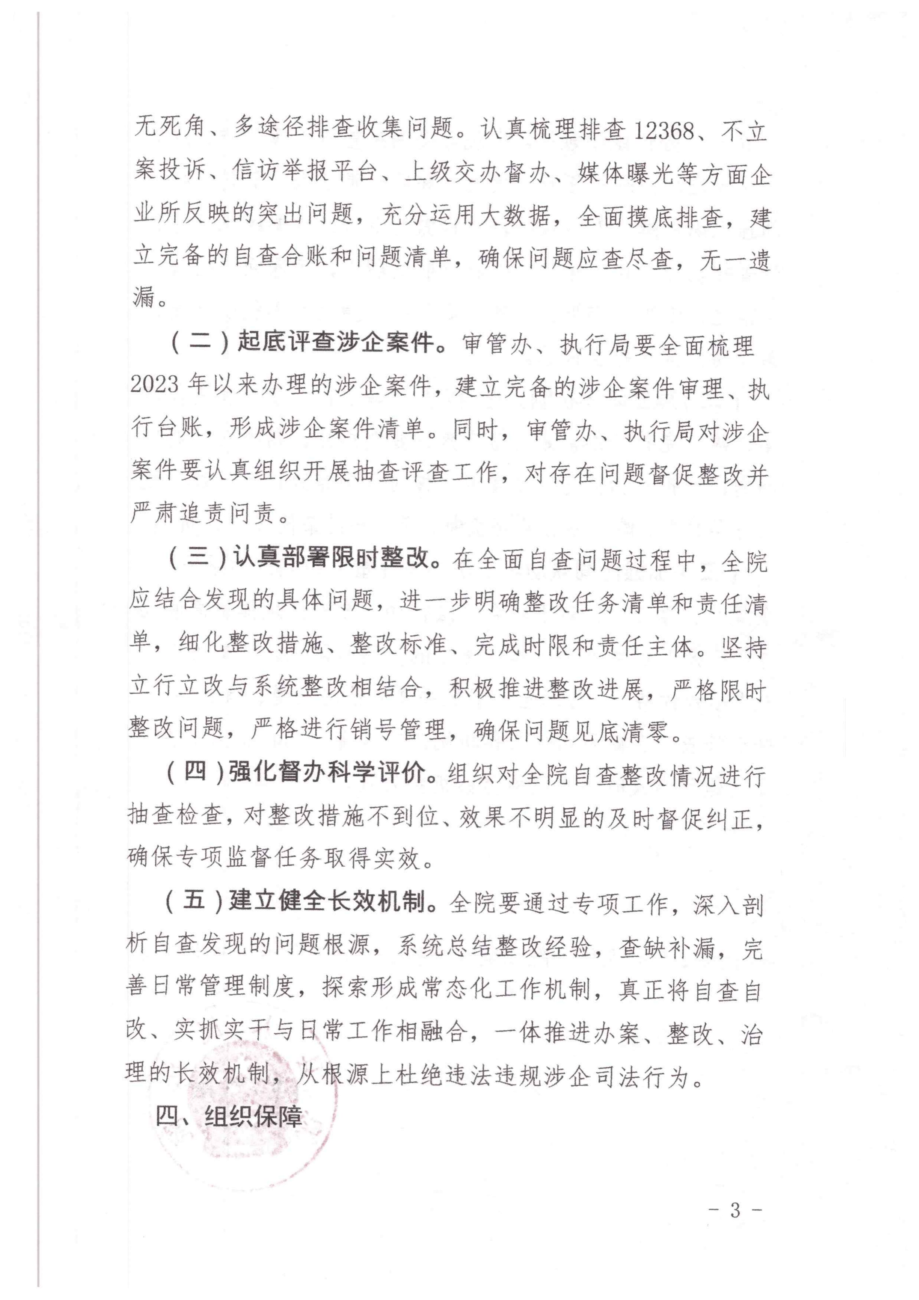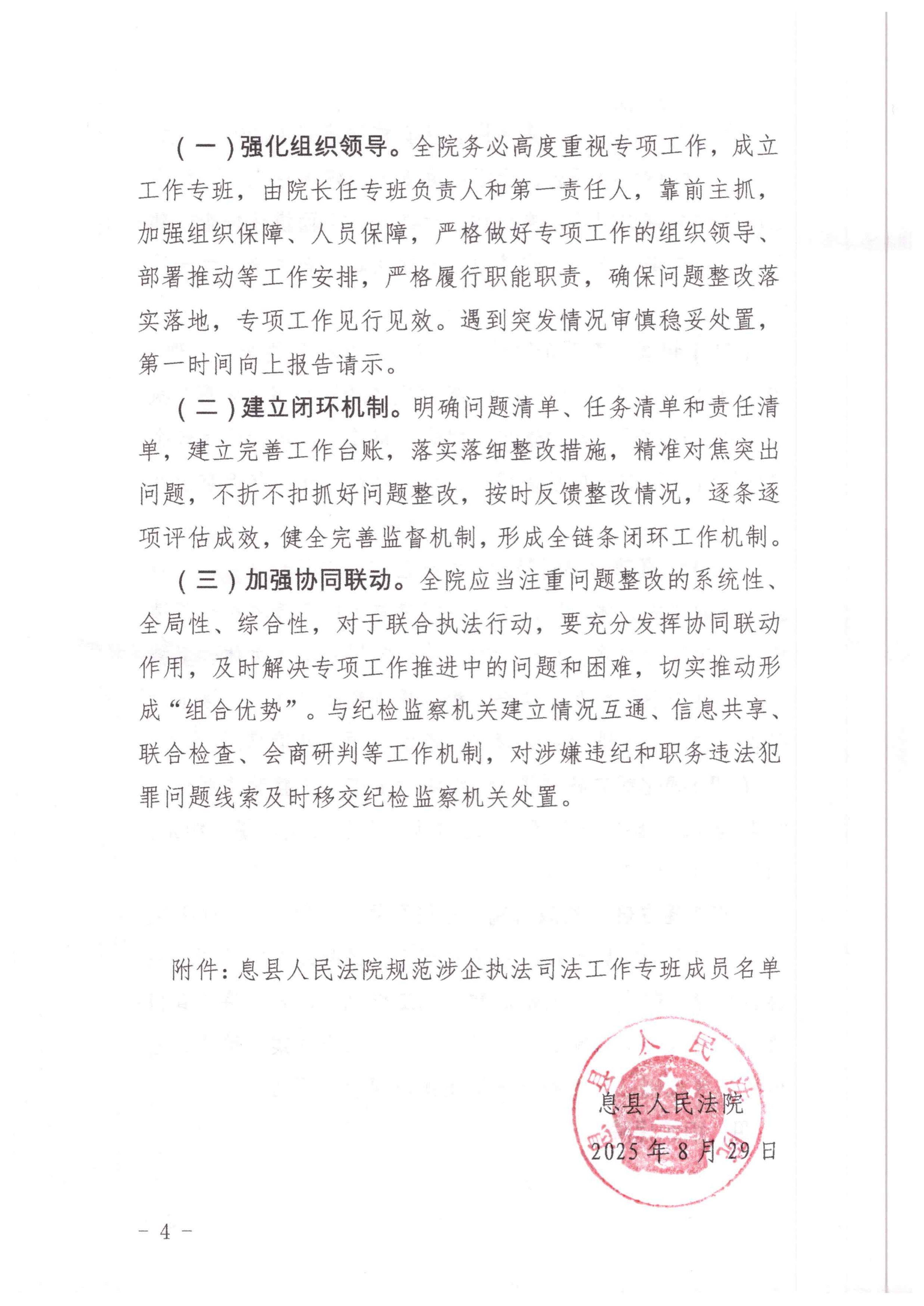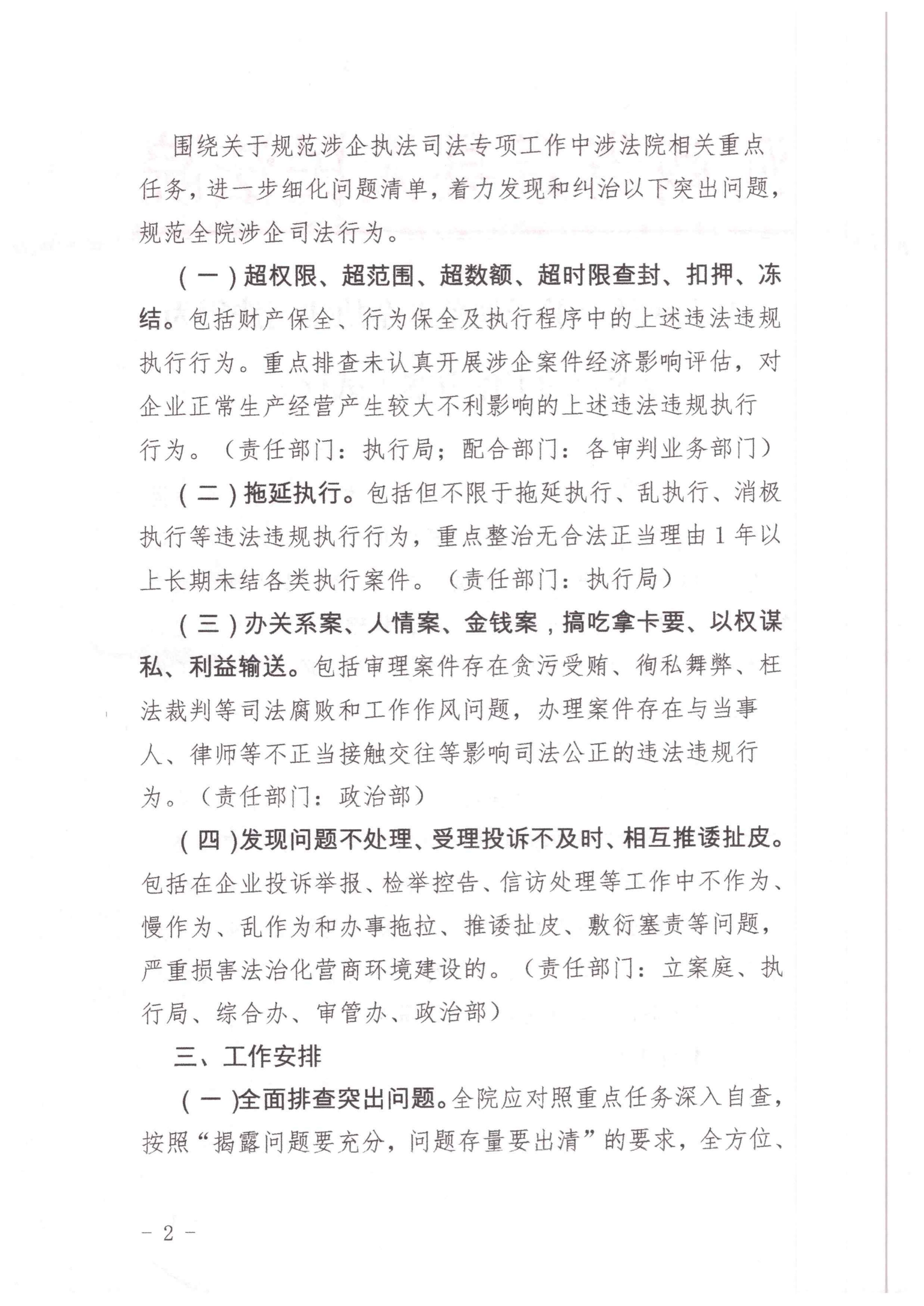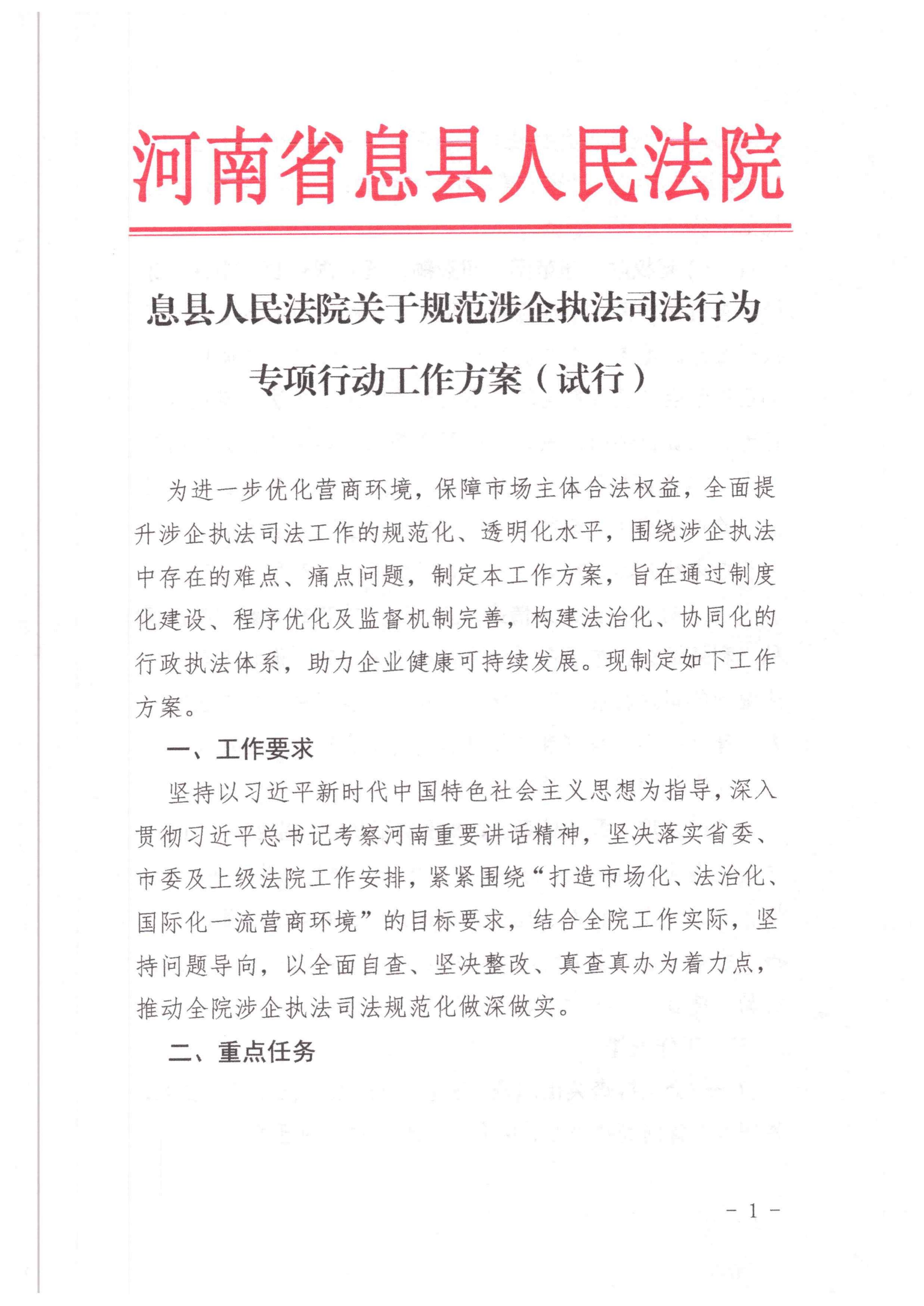 息县人民法院关于规范涉企执法司法行为专项行动工作方案(试行)