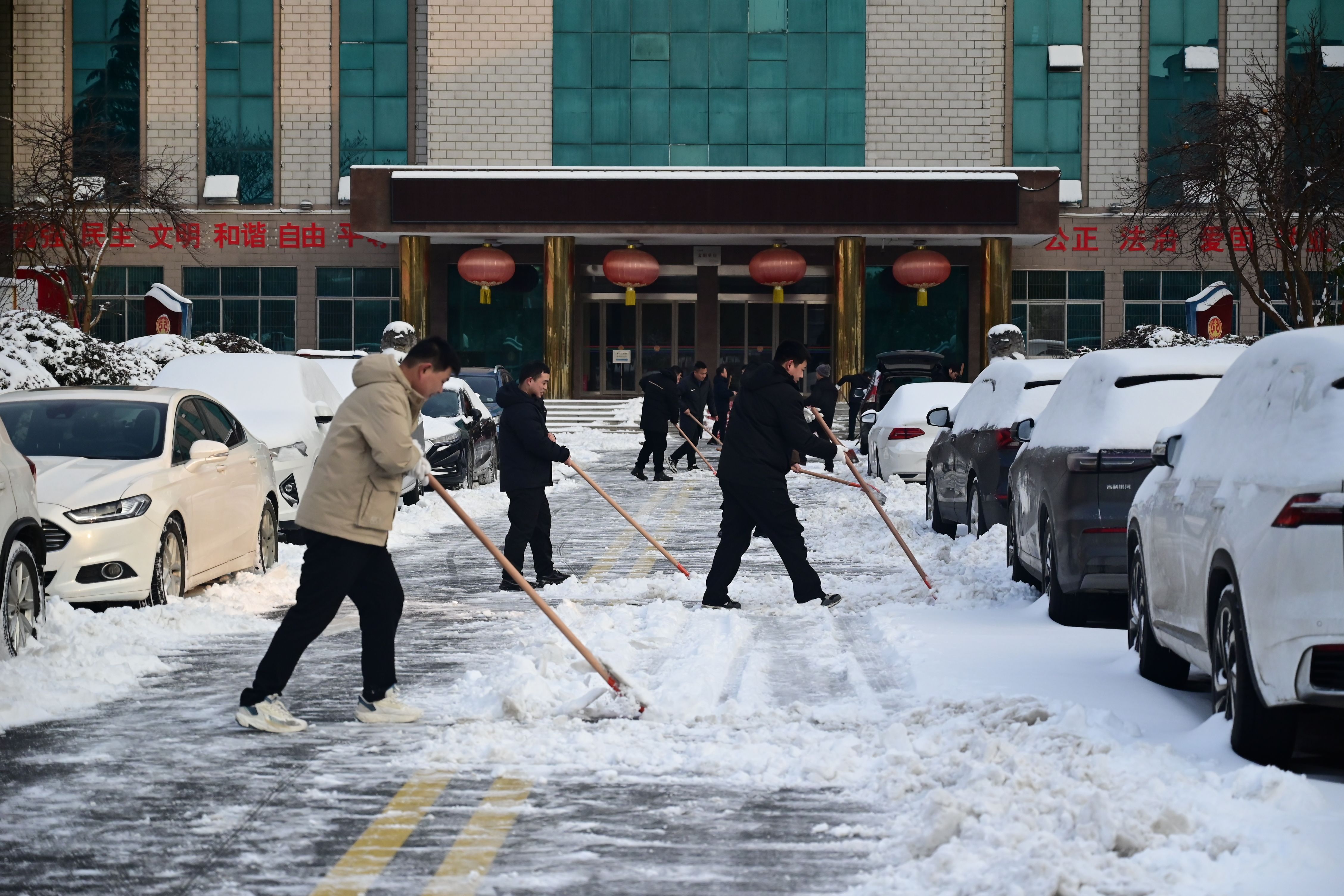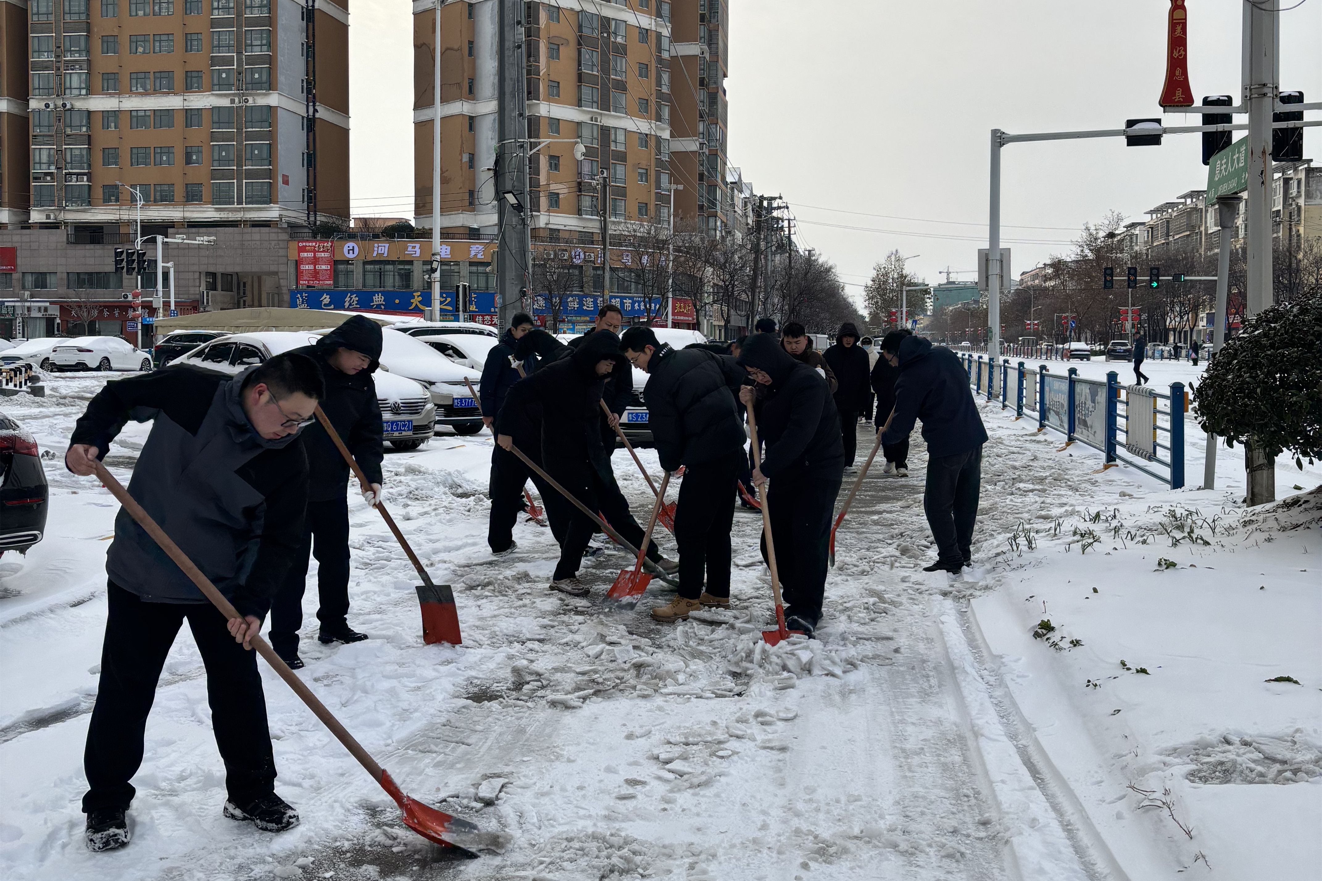 寒风中,干警们迅速集结到位,手持铁锹、扫帚全力投入扫雪战斗中。大家分工合作,有的用铁锹奋力破除路面坚冰,有的推着小车将积雪运送指定位置,热火朝天的忙碌中,寒冷似乎也不再是问题。短短一个半小时,原本被皑皑白雪覆盖的院内主干道、诉讼服务中心和办公楼前已经干干净净,为当事人进出提供了便利。