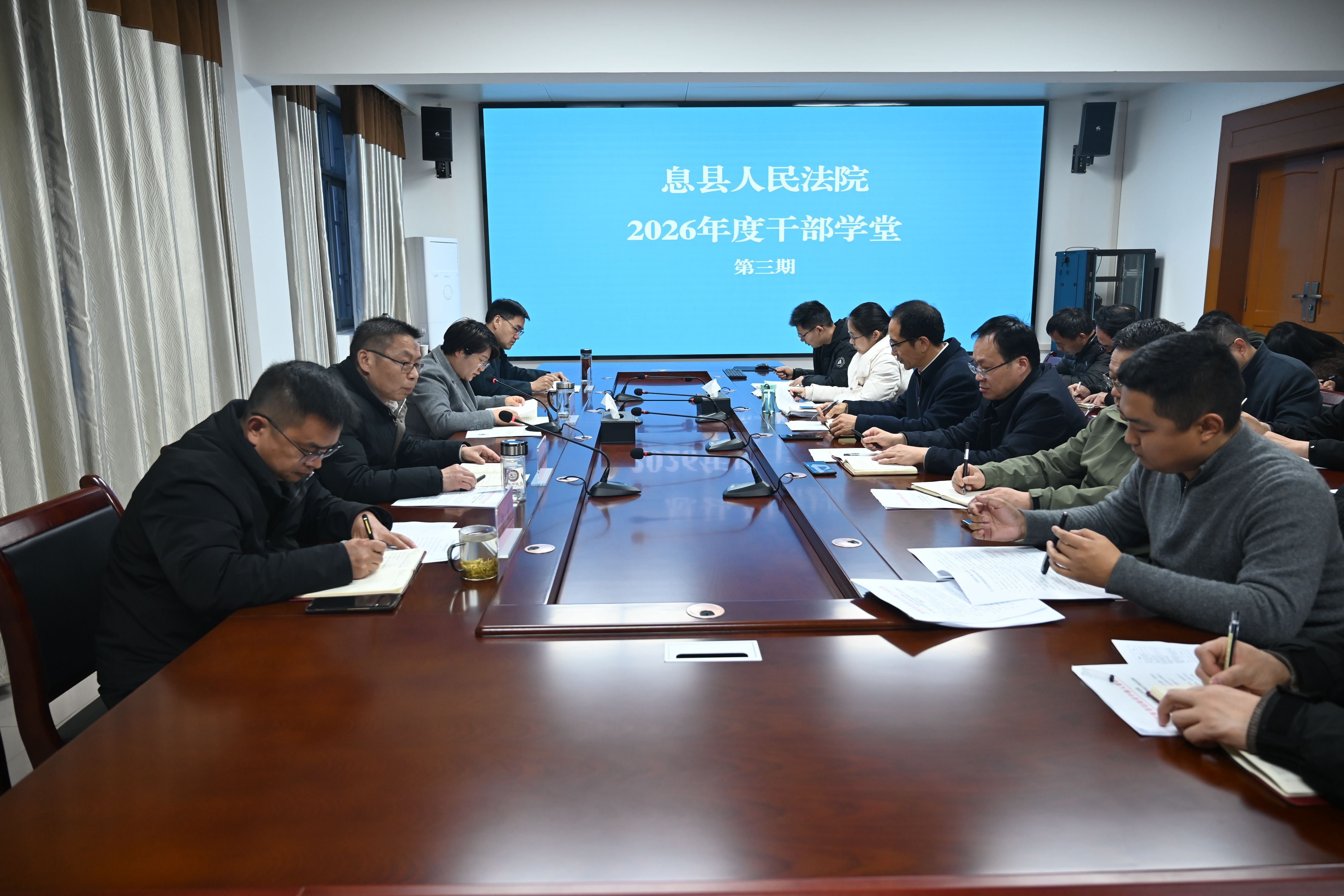 3月19日,息县法院召开2026年第三期干部学堂,在家的院班子成员、党支部书记、部门负责人、员额法官及法官助理参会。