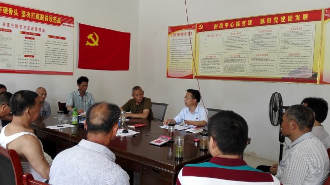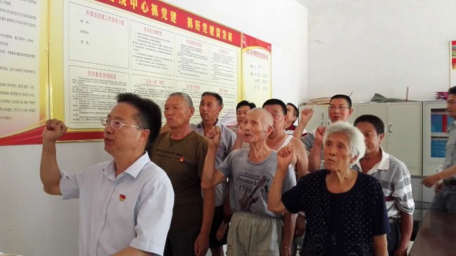 关店乡吴村铺村是息县法院的对口帮扶村之一,该村共有村民3153人,其中党员26人,作为该村的处级干部联系人,息县法院党组书记、院长祝杰不仅牵挂着该村的基础设施建设和贫困户脱贫情况,还十分关心该村的党组织建设和党员思想状况。6月28日下午,祝杰不顾天气炎热,专门来到该村,给该村的党员讲党课、并带领党员重温入党誓词。