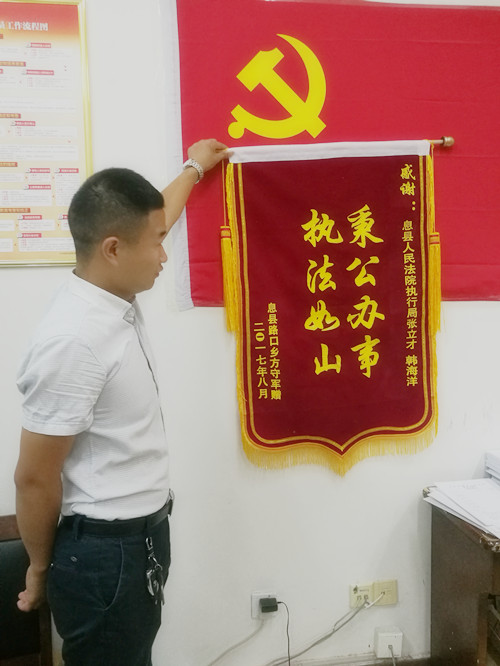 8月中旬的一天,息县法院执行局指挥中心正埋头整卷的书记员韩海洋突然被当事人喊了出去。